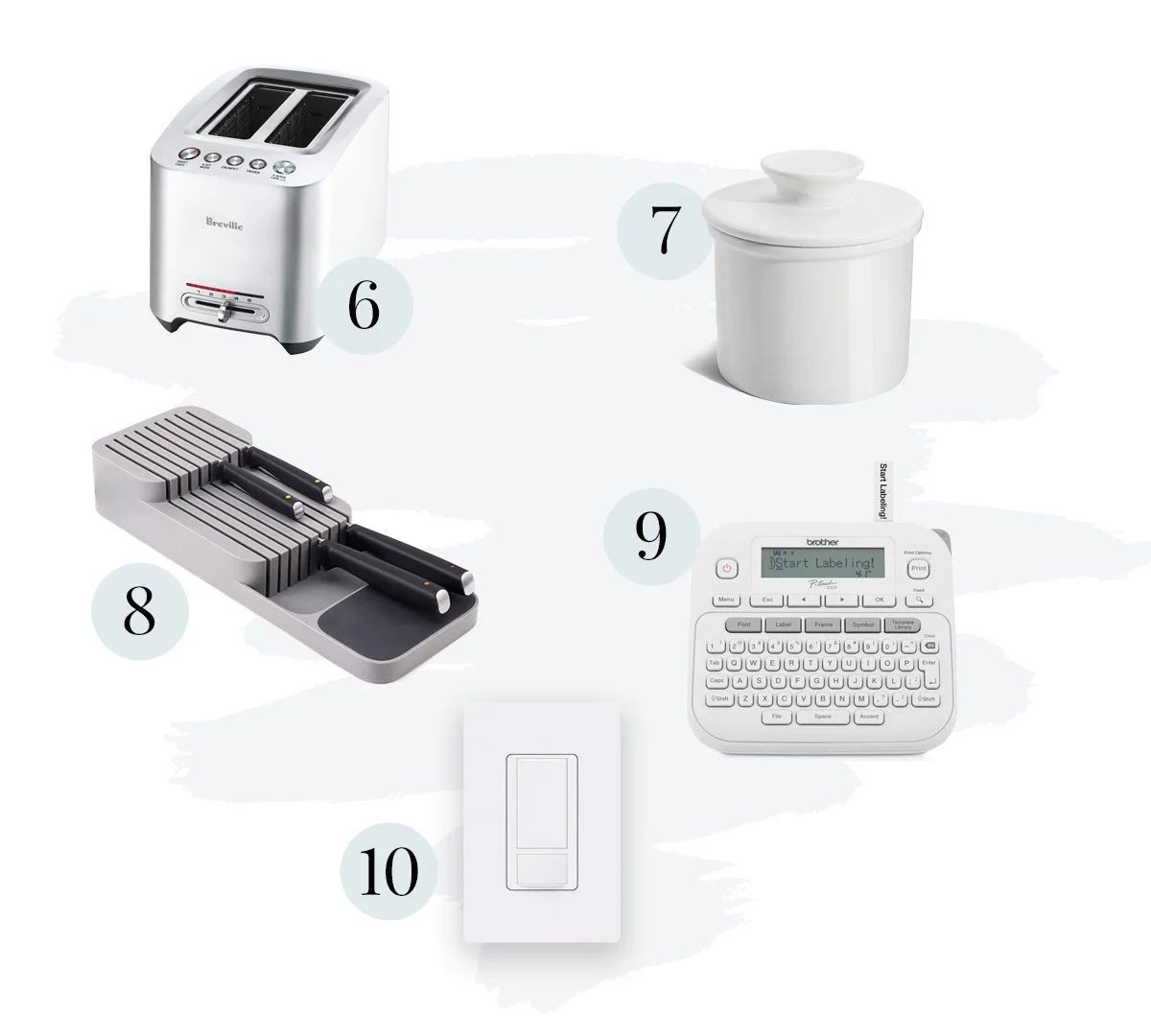 Another great gift for the new homeowner is a starter kit of smart light switches. These savvy switches allow homeowners to dim and pre-set lighting settings - all while having complete control from an app on your phone or tablet. For our bedrooms, we opted for the switches with accompanying remote so lights can be turned off from the convenience of the covers.